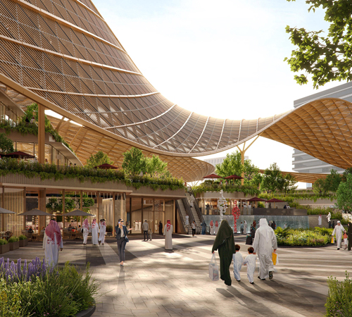 The above grade with retail shops, monorail station, canopy area and the landscaping.